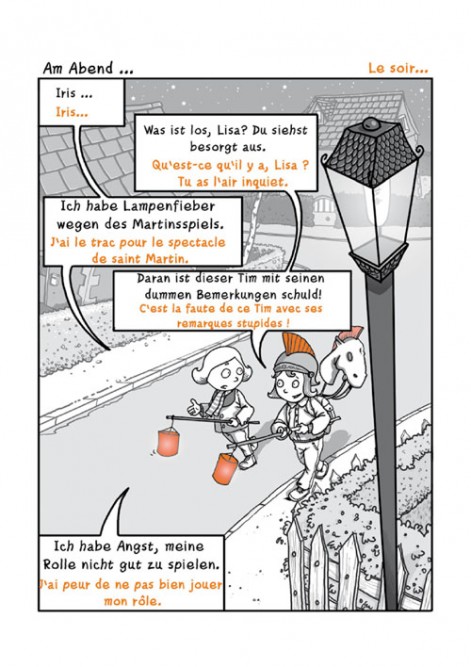 ![]() | 8,50€TVA réduite 5,5% Extraits Ecouter Novembre, 2010 De 6 à 12 ans 16x12, 48 pages couleurs, couverture rigide Cette année, pour la fête des Lanternes, Iris et Lisa sont les vedettes de la pièce de théâtre traditionnelle, au grand dam de Tim, qui leur lance un défi. Mais les fillettes se perdent en forêt. Tim tient-il sa revanche ? Communiqué(s) |